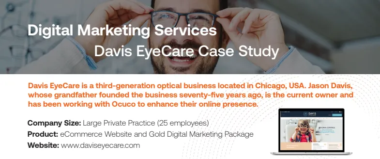 Davis EyeCare has been using Ocuco’s Digital Marketing Services since 2019 to align their goals in the digital world, become a strong competitor and improve their visibility among potential local customers.