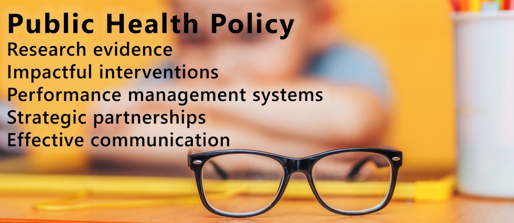 Research evidence, impactful interventions, performance management systems, strategic partnerships and compelling communication are the essential features of effective public health strategies. Innovation is important across each of these features, but the glue which pulls everything together is political commitment. This provides the traction necessary to deliver and sustain progress. Unfortunately, our efforts towards a public health solution for the myopia epidemic have been somewhat haphazard, and it seems clear that the above requirements for effective public health are not yet established.