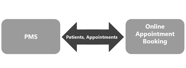 The traditional approach offers these services by connecting OmniChannel products to the existing Practice Management System (PMS) using a data exchange interface. This usually works well when the online facing element is a relatively straightforward step, such as booking an appointment. However, as online services increase in scope, the complexity multiplies. Consider, for instance, the relatively simple case of booking appointments online. Ideally, both PMS and online appointment booking systems should be connected in real-time, exchanging information about the appointment and the patient.