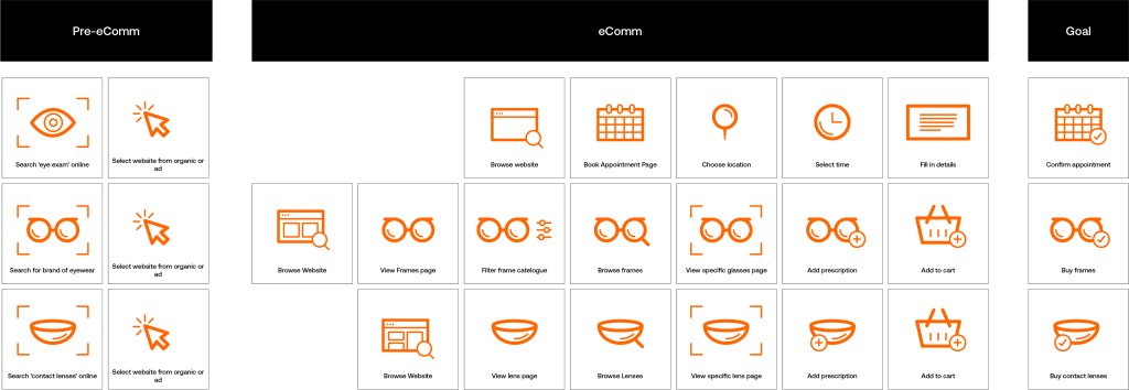 Example of customer journeys and the different online touchpoints required for different goals.